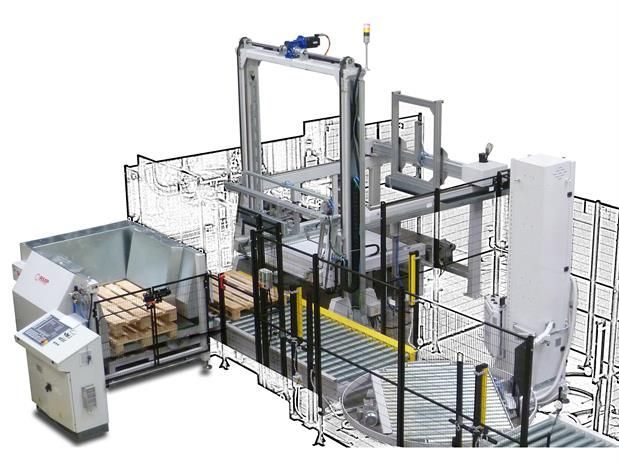 - POSEIDON Pallettizzatore a strati adattato per la manipolazione di secchi